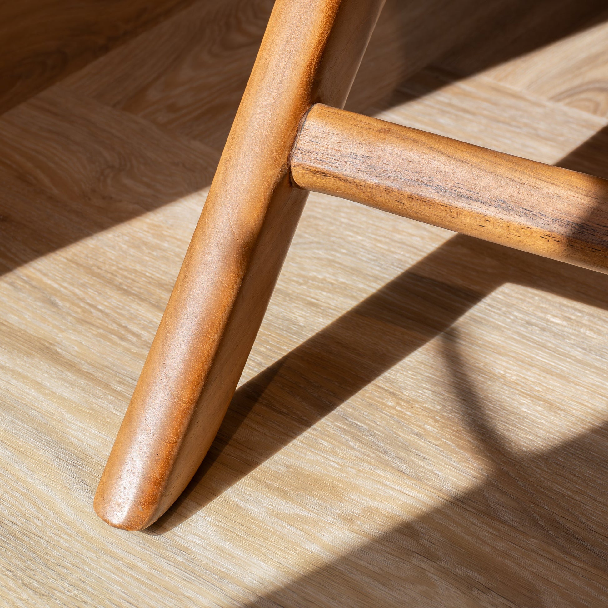 Once the frame is complete, the seat and backrest are handwoven with a durable rattan blend, chosen for its strength and gentle flexibility. Each cord is wrapped with precise tension to form a supportive weave that resists sagging, mould, and discolouration, while giving just enough natural flex for comfort.
